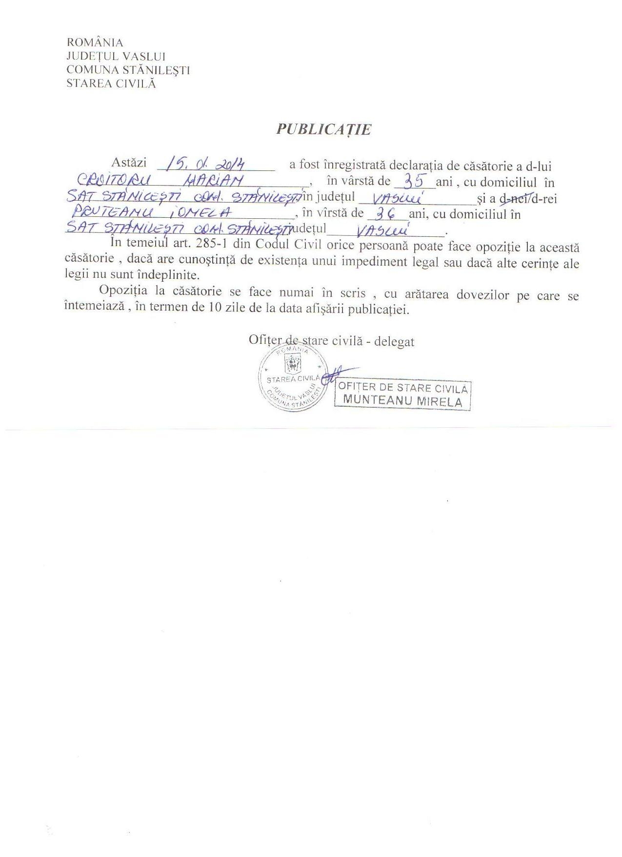 Image Publicatie casatorie- Miron Tudor Lucian ( jpg, 260 KB ) (1252 downloads) Popular