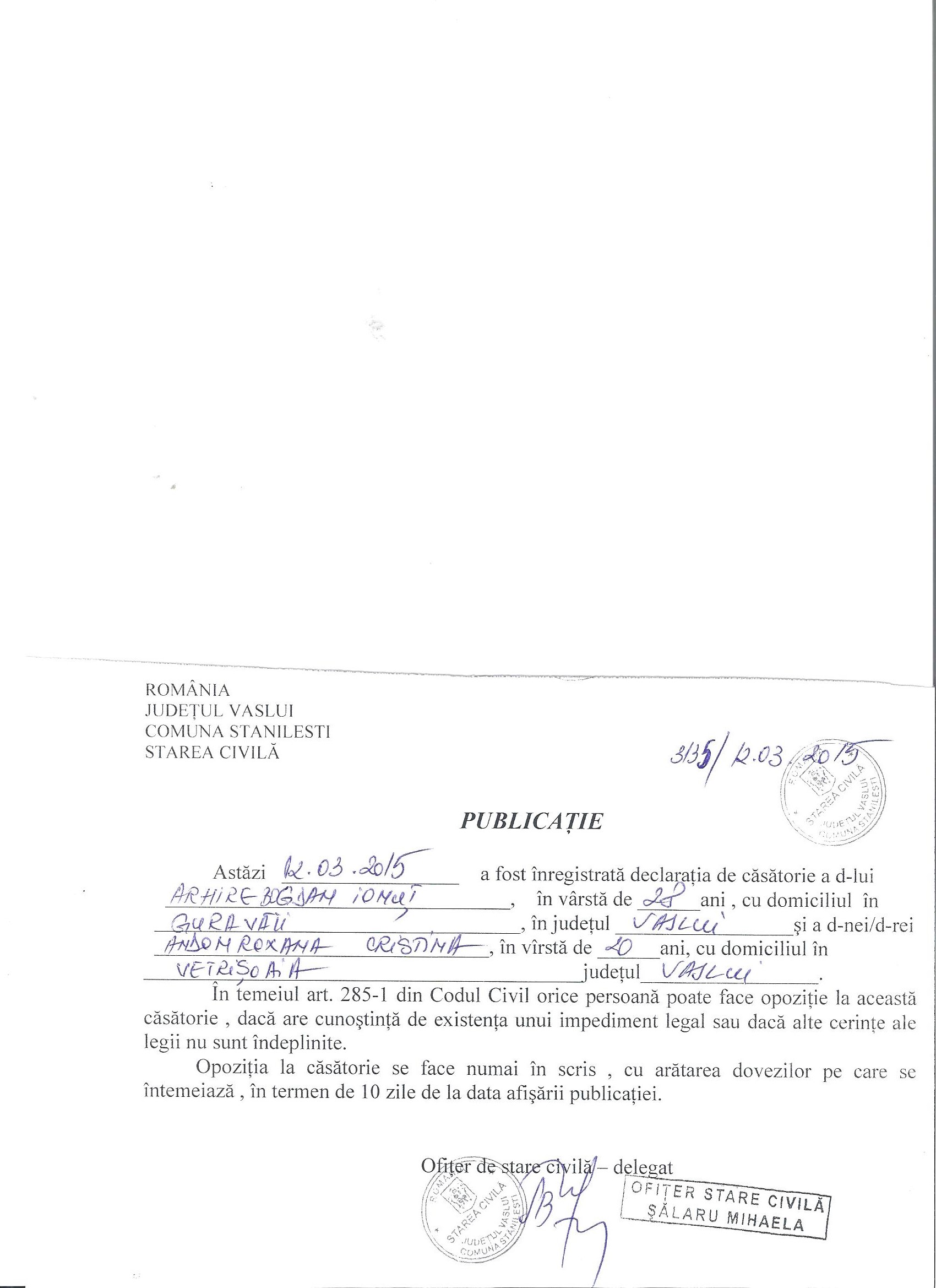 Image Publicatie casatorie Arhire Bogdan Ionut ( jpg, 362 KB ) (1267 downloads) Popular