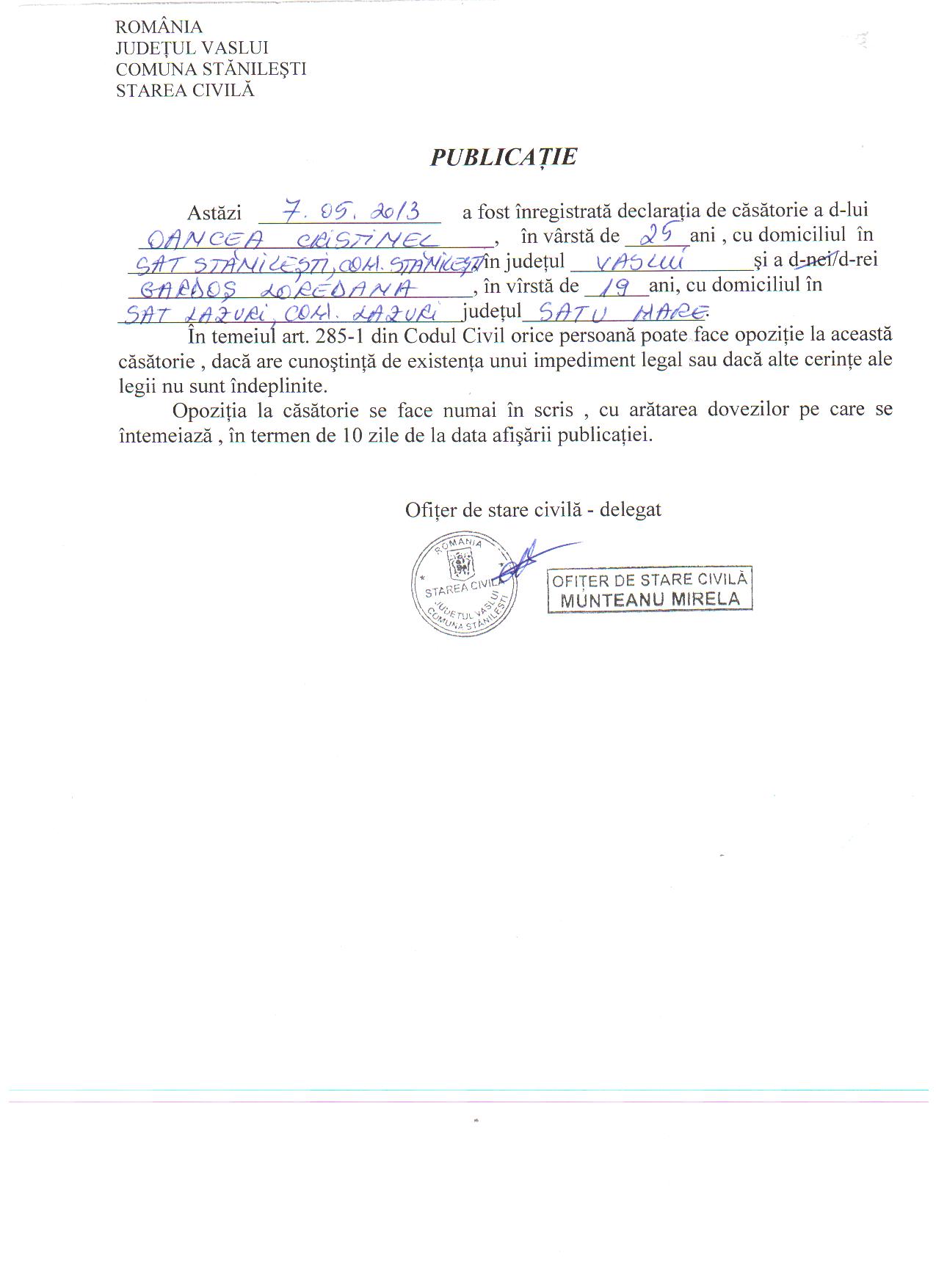 Image Publicatie casatorie Oancea Cristinel ( jpg, 150 KB ) (1198 downloads) Popular