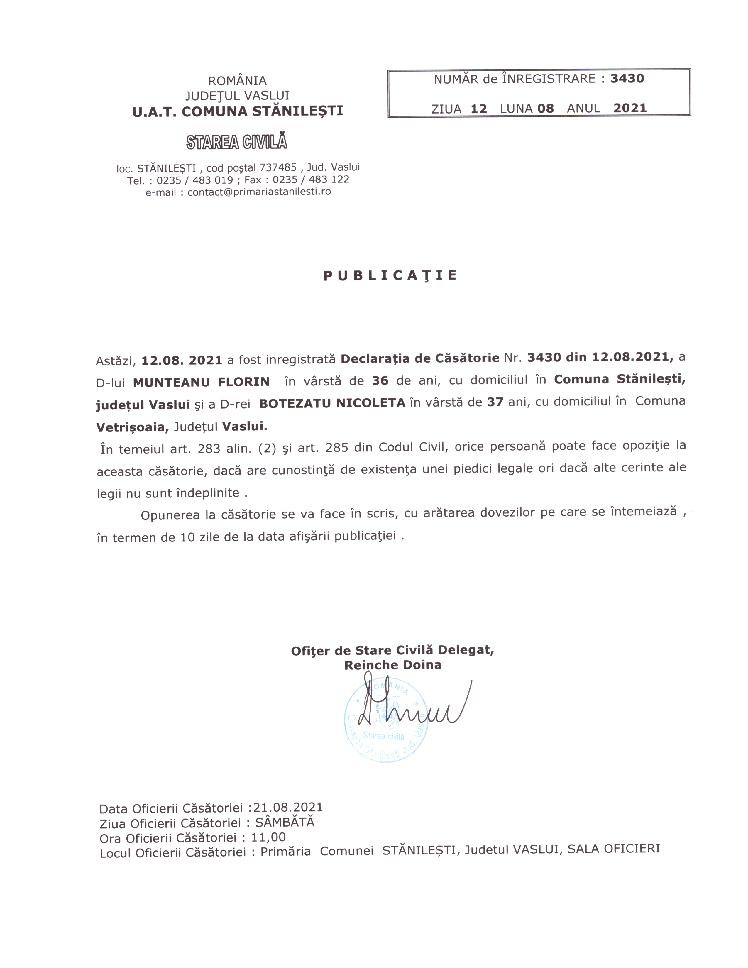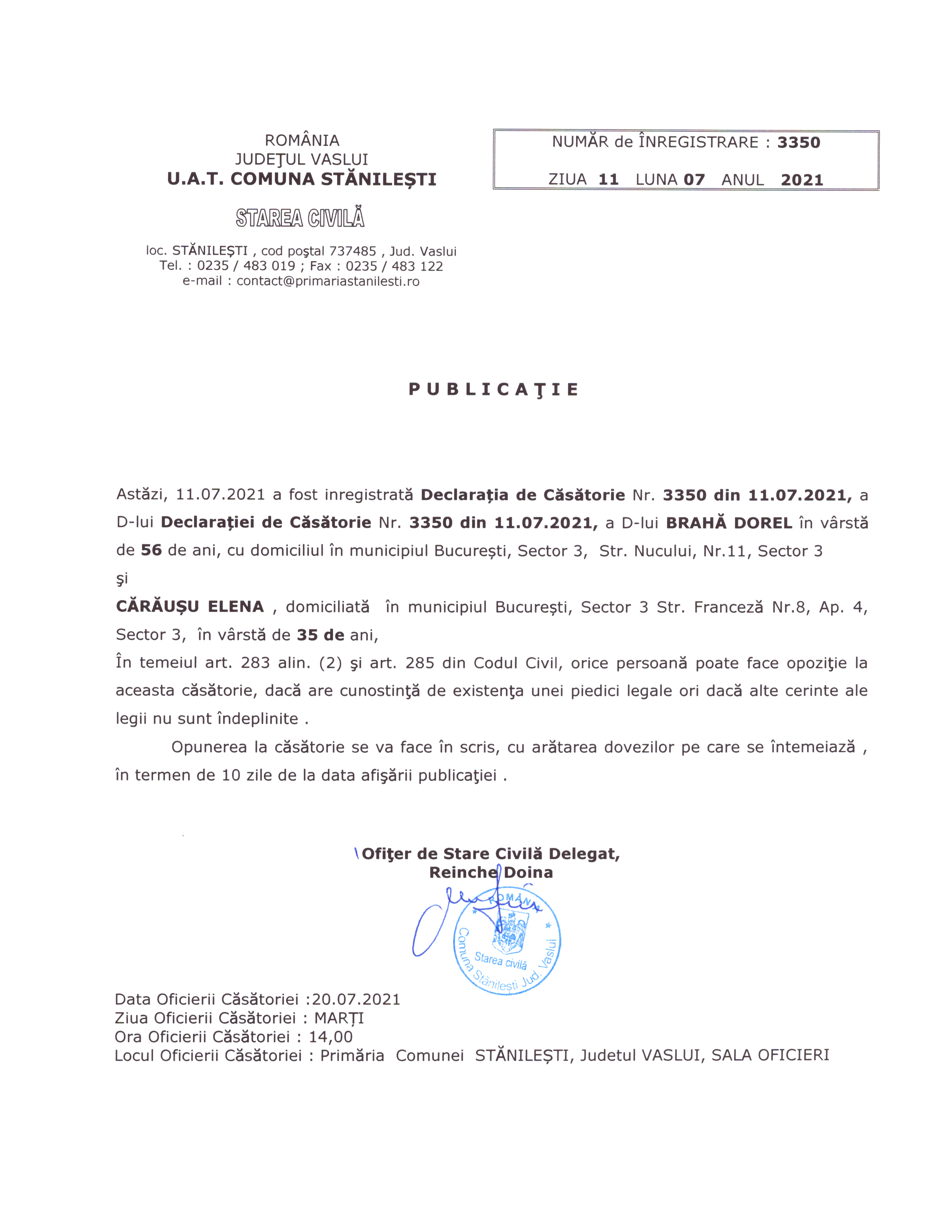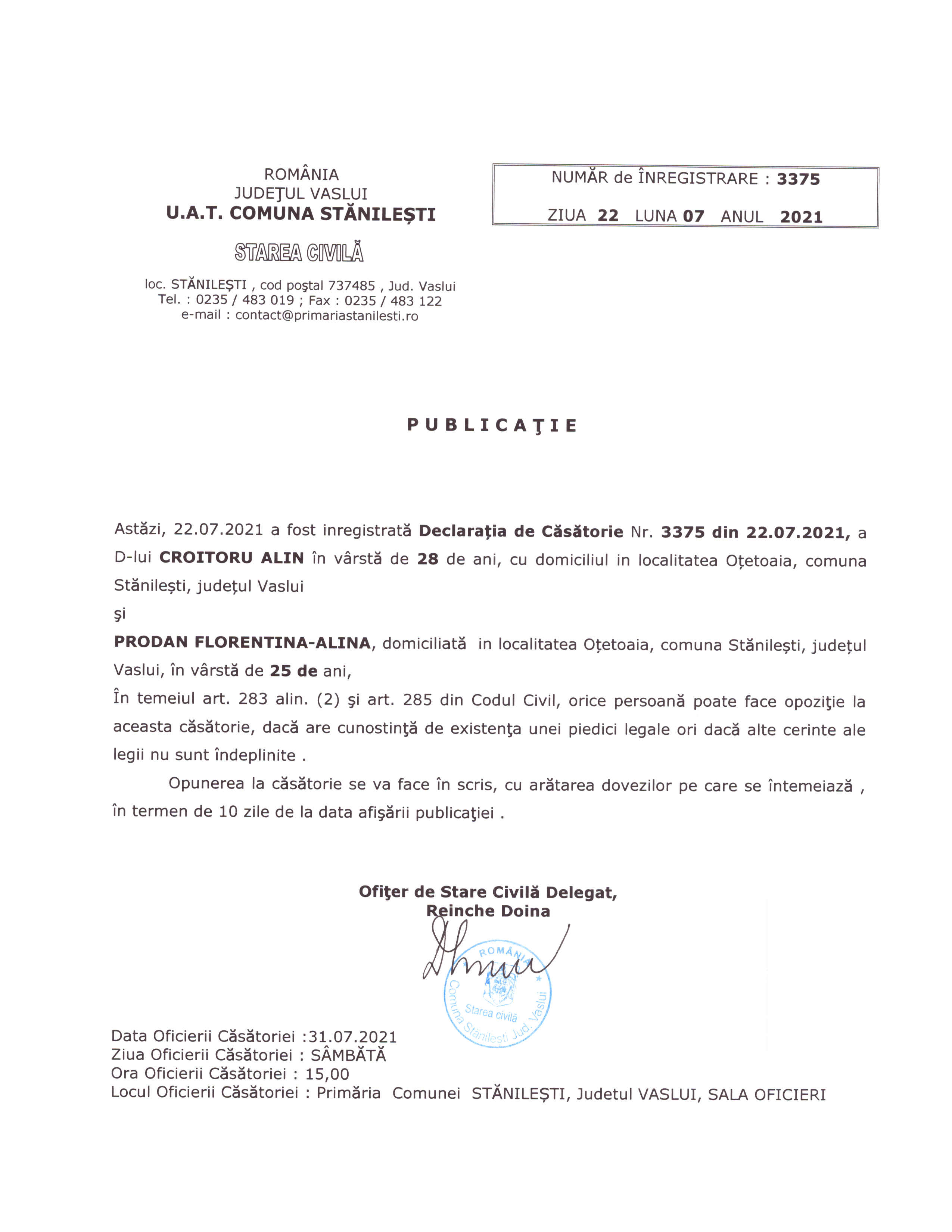 pdf Publicatie de casatorie Golie Marius-CIprian si Oancea Madalina ( pdf, 385 KB ) (408 downloads) Popular