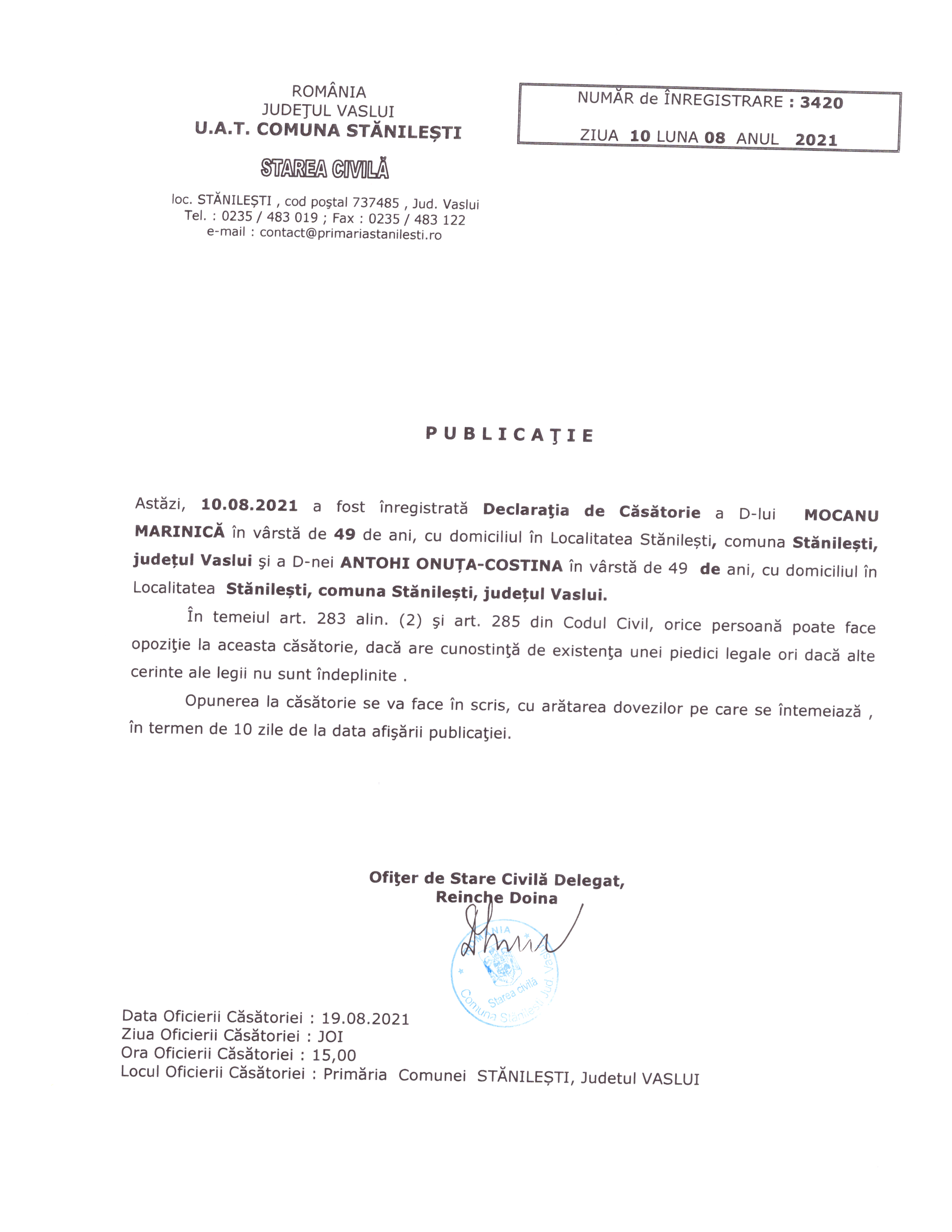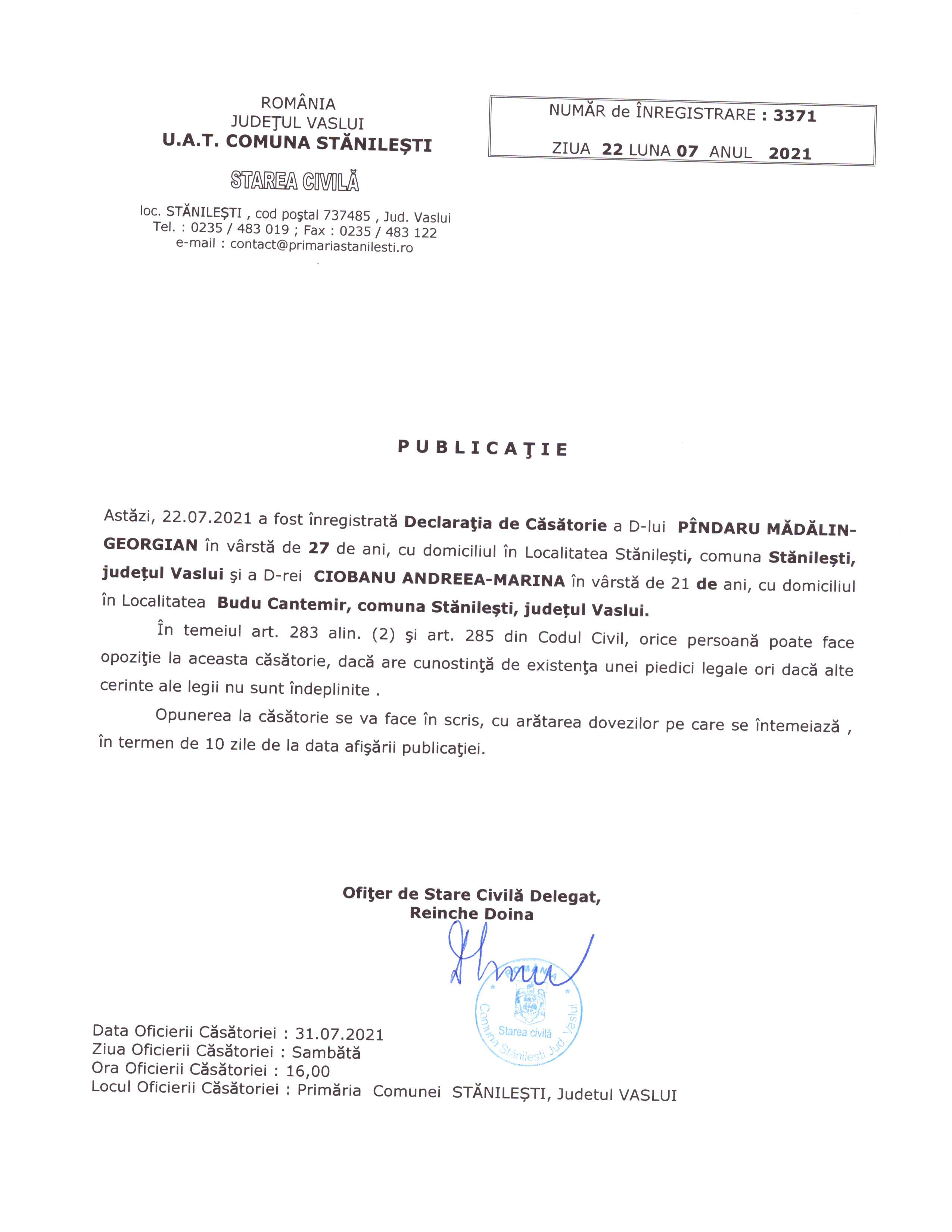 Image Publicatia de casatorie Pîndaru Madalin Georgian si Ciobanu Andreea Marina ( jpg, 1.17 MB ) (350 downloads) Popular